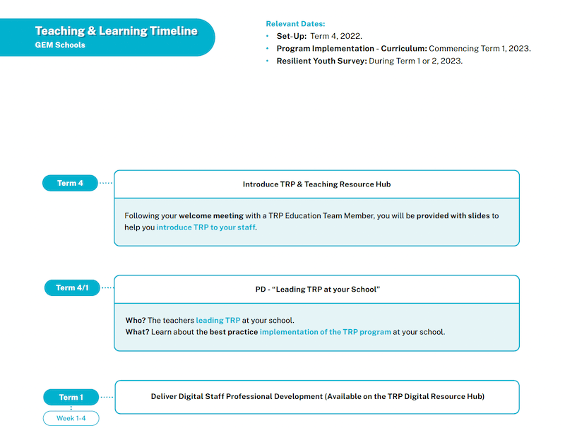 To assist with the implementation of your program, we have collated the following documents which hold key information to set your school up for success.Â